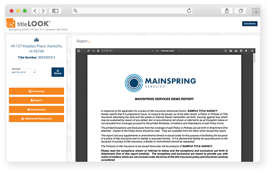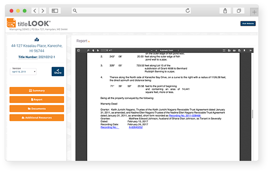 The hyperlinked version of the report is embedded within titleLOOK. It’s always available for users to reference or download. Every supporting document that was hyperlinked is readily available to view online. There’s also an option to download all.